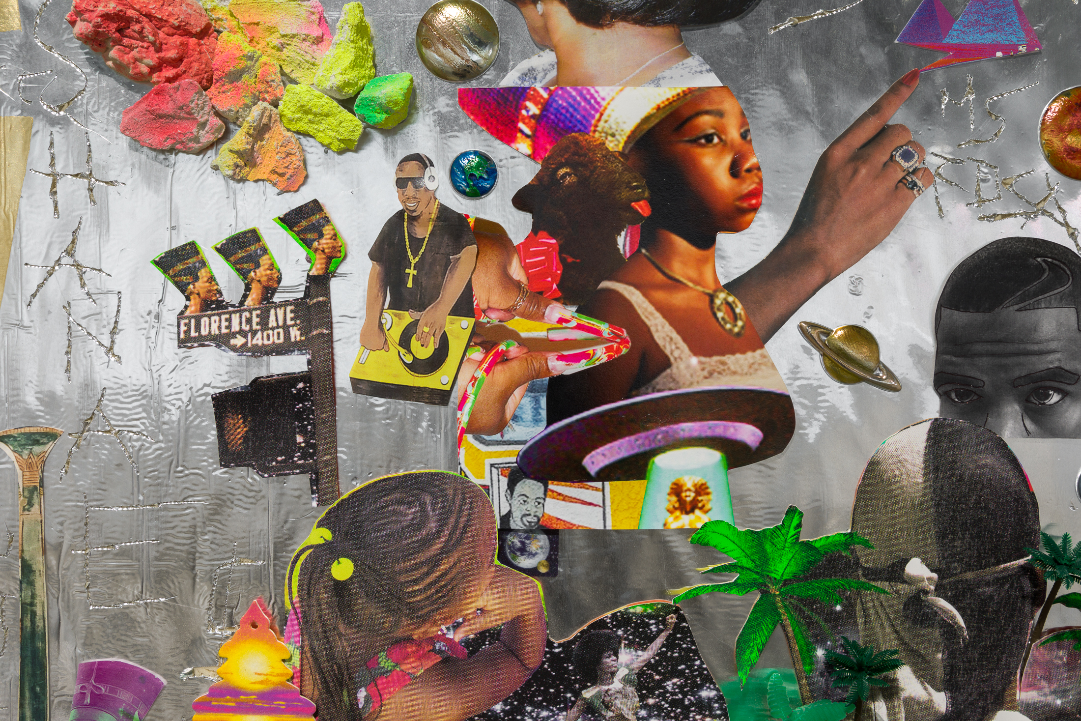 Including works by Cudelice Brazelton IV, Abigail DeVille, Nikita Gale, Lauren Halsey, E. Jane, Steffani Jemison, Jennie C. Jones, Freddie June, Christine Sun Kim, Carolyn Lazard, Lydia Ourahmane, Sondra Perry, Patricia Satterwhite, Jessica Vaughn, Carrie Mae Weems.