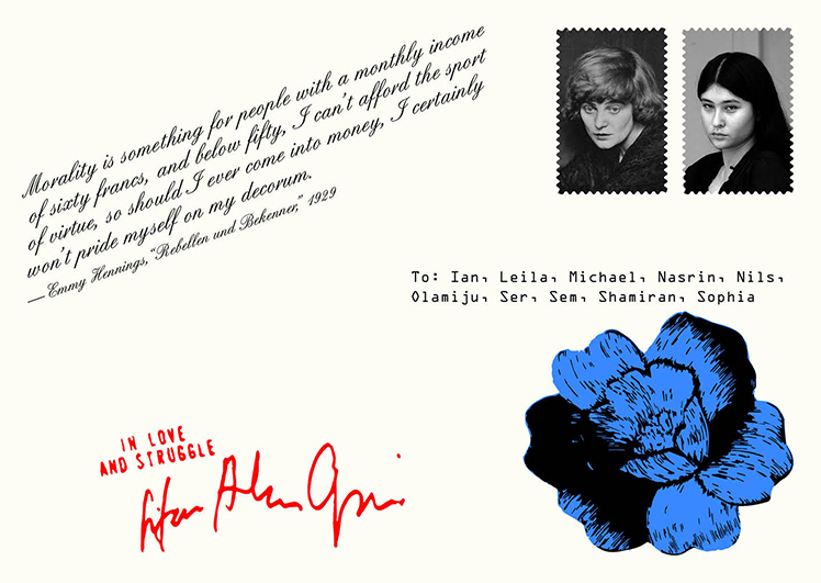Swiss Institute is delighted to present a two-person presentation of underrecognized 20th-century writer and artist Emmy Hennings (b. 1885, d. 1948) and emerging Zurich-based artist Sitara Abuzar Ghaznawi (b. 1995). The exhibition situates Henning’s rarely seen archive of art and writing within a series of vitrines and showcases made by Ghaznawi. Newly conceived for the Reading Room at SI, Emmy Hennings / Sitara Abuzar Ghaznawi was originally presented this past spring at Cabaret Voltaire, Zürich, where it was curated by director Salome Hohl.