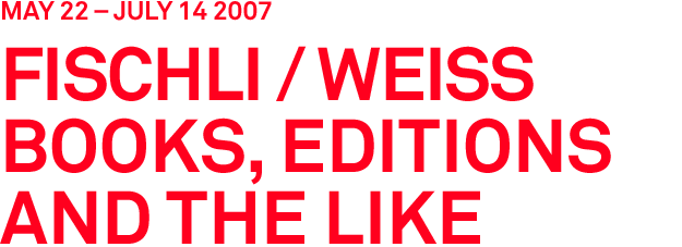 Since the beginning of their collaboration, Swiss artists Peter Fischli and David Weiss have given special consideration to the many artist books, special editions and multiples that have accompanied their projects of the past thirty years. This rich and ever-expanding archive of printed matter, including proofs and storyboards for their publications and films, at once illustrates and constitutes a part of the artists' oeuvre; through it one can trace the path of their creative process from concept to prototype and back again. On view at the Swiss Institute, this comprehensive collection of Fischli/Weiss' working materials is augmented by a selection of their exhibition posters and video works, including The Way Things Go, Kitty, and Dogs.