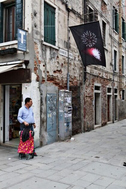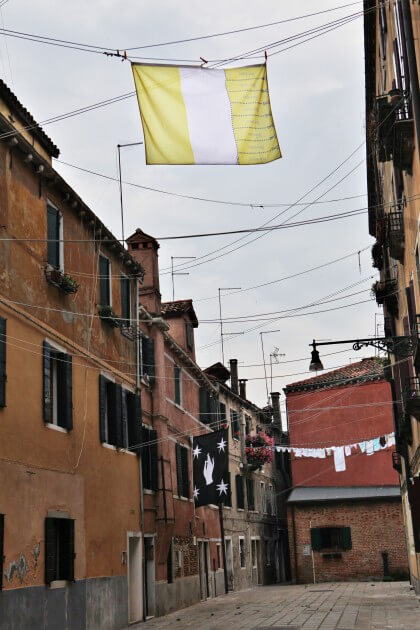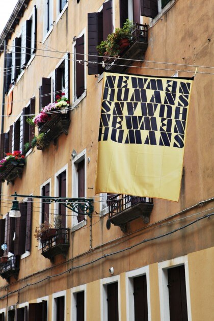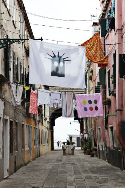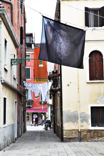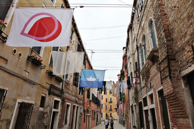 The project will be installed in the byway between the Giardini and the Arsenale, the two main venues of the Venice Biennale– a key place to be visited by thousands of professionals and public visitors during the Biennale’s opening days. There will be no map that indicates the exact locations; flags will, therefore, be encountered by chance.