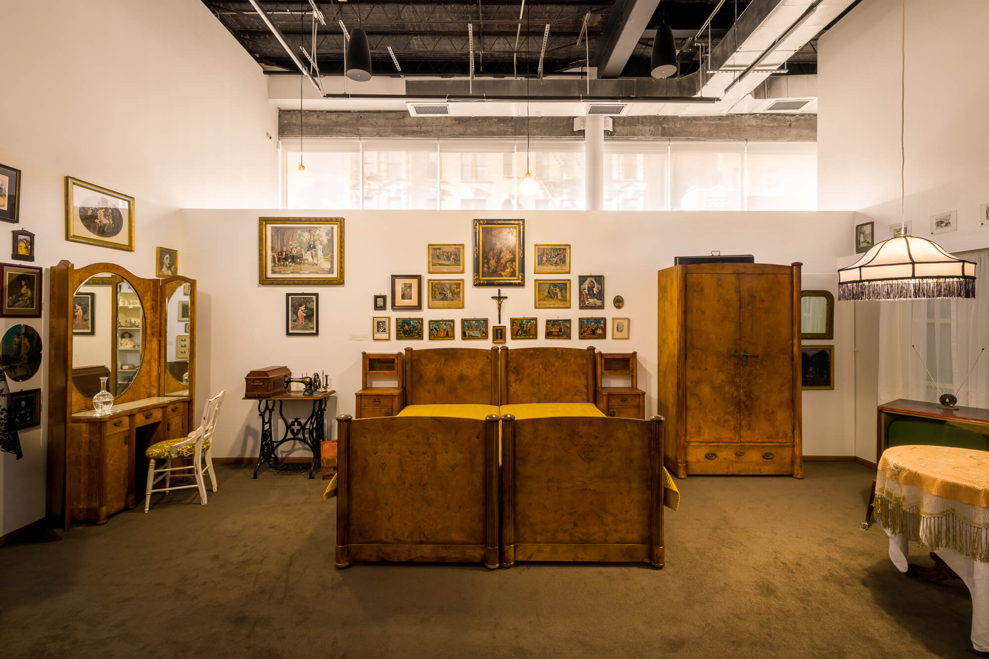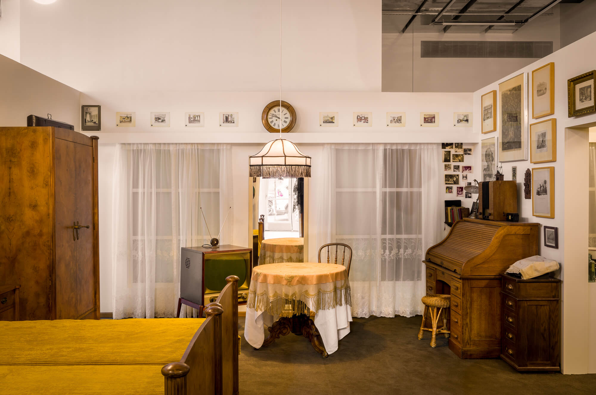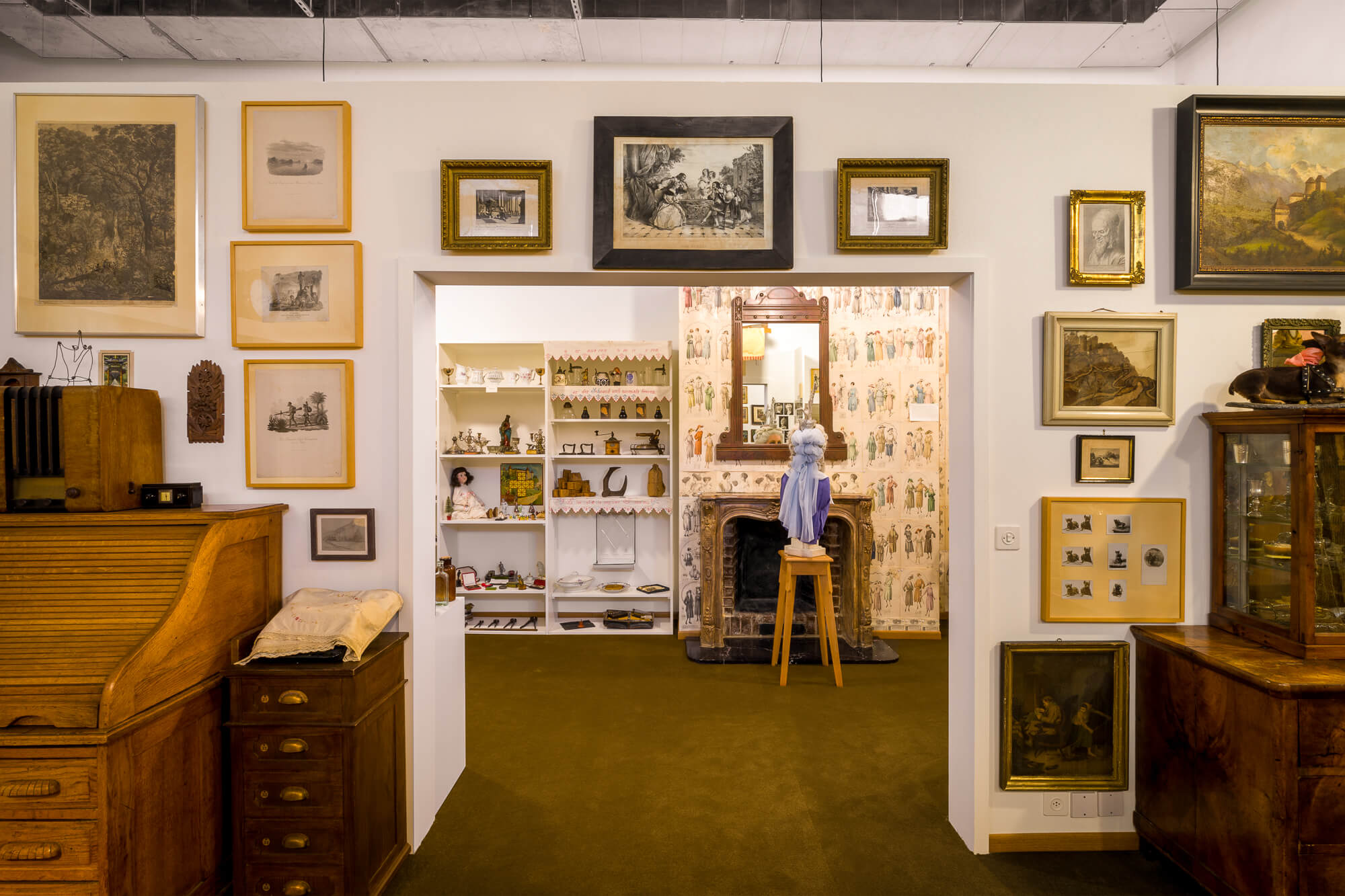 The exhibition marks a significant moment in Szeemann’s development, as it set in motion a series of projects that challenged what constitutes both exhibitions and institutions, whilst redefining the practice of curating. This full-scale reconstruction is a culmination of three years of research and conservation by the Getty Research Institute, Los Angeles. Szeemann maintained most of the hundreds of elements from the original exhibition, including furniture, and this presentation carefully reproduces it, complete with family photographs, his grandfather’s art collection, household objects, and the fascinating tools of the hairdressing trade.
