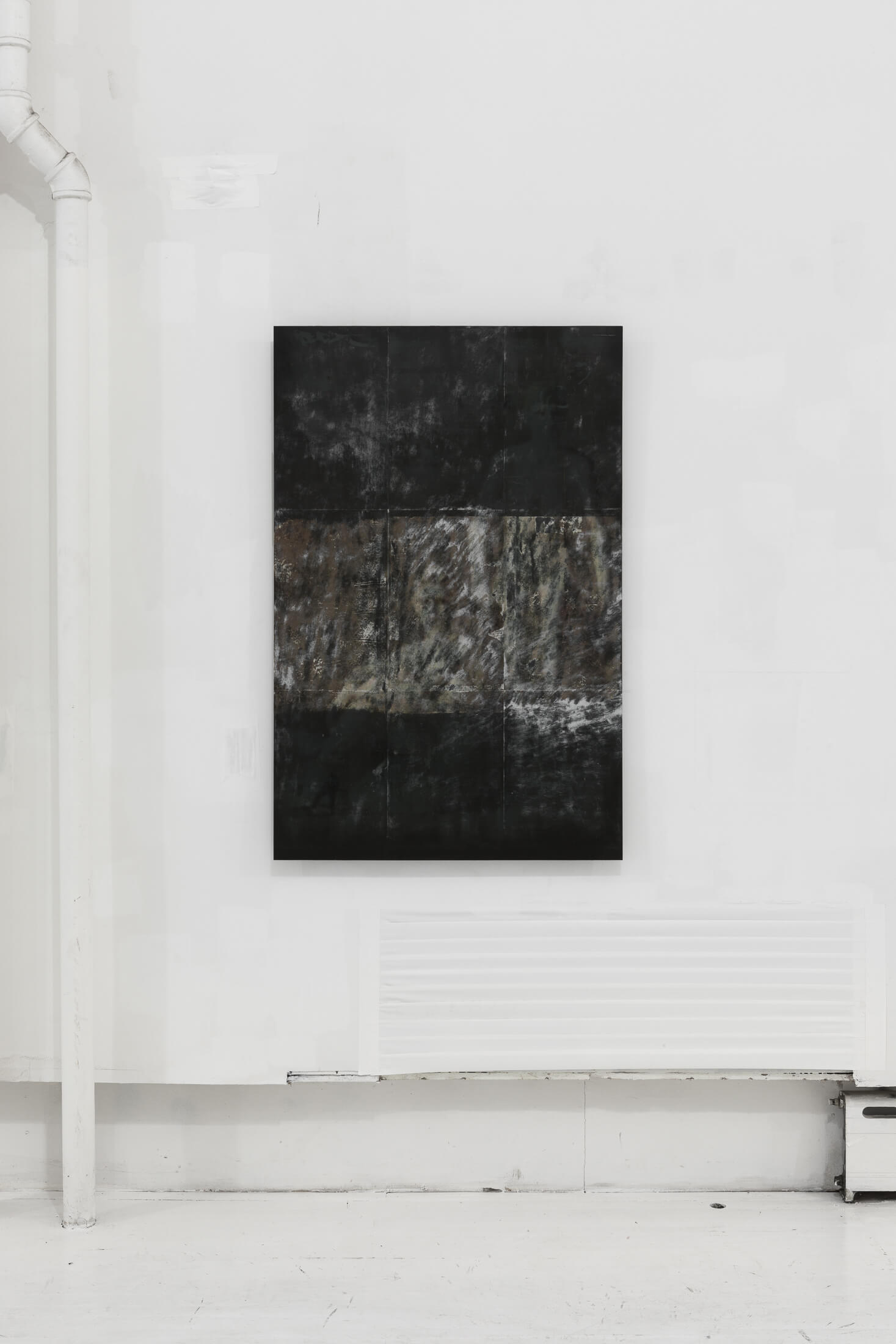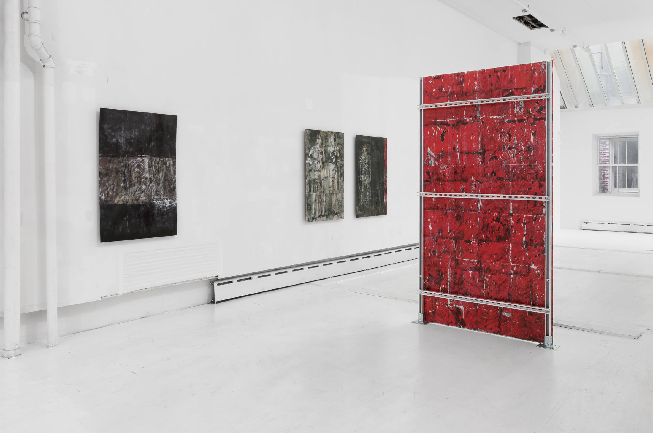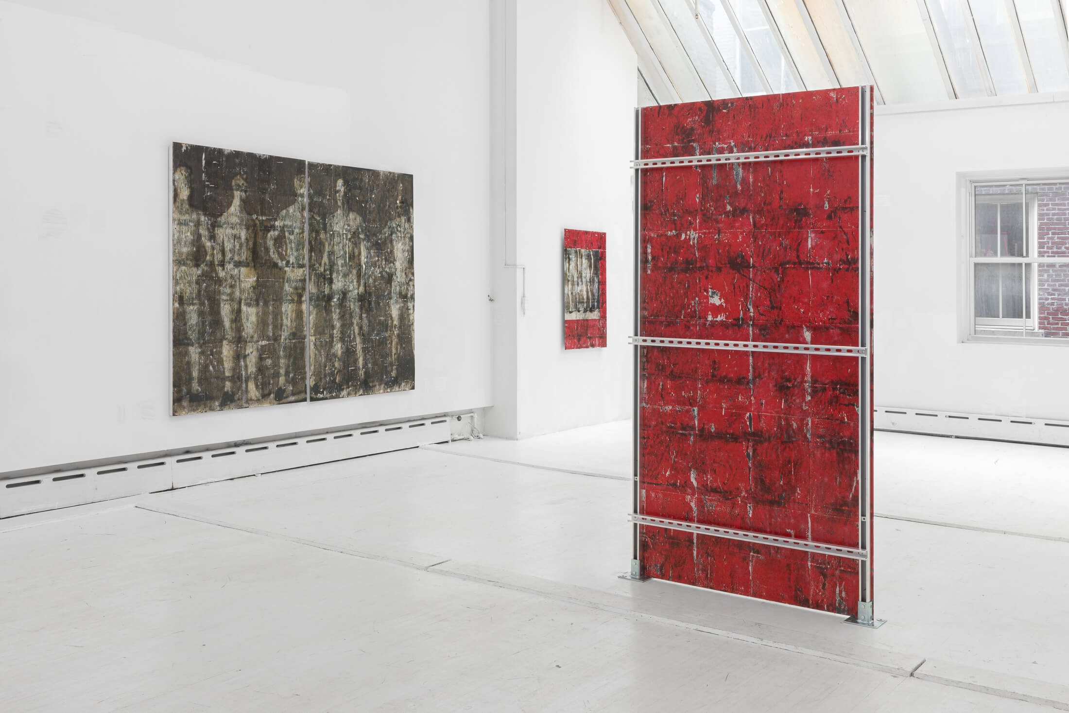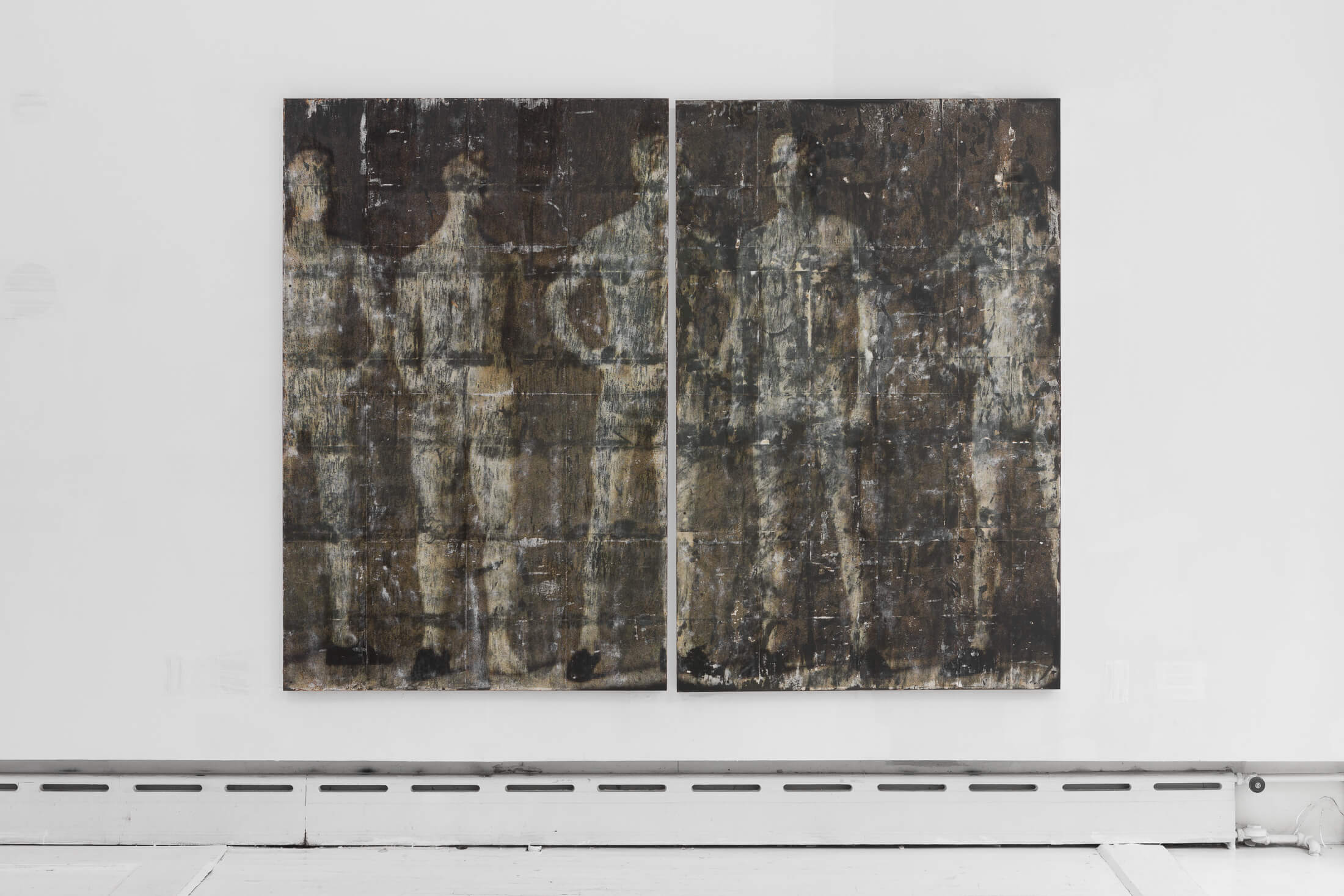 Hung on walls and mounted on standing displays, Bantone’s works have a textural residue akin to wheatpasted street advertisements. Applied with an acrylic transfer process onto steel plates, the bodies are rendered simultaneously as subjects and as objects, put on view in a Soho storefront. Men wear loafers and women wear high-heeled pumps. Information is lost, distorted and re-created through various interventions on the images.