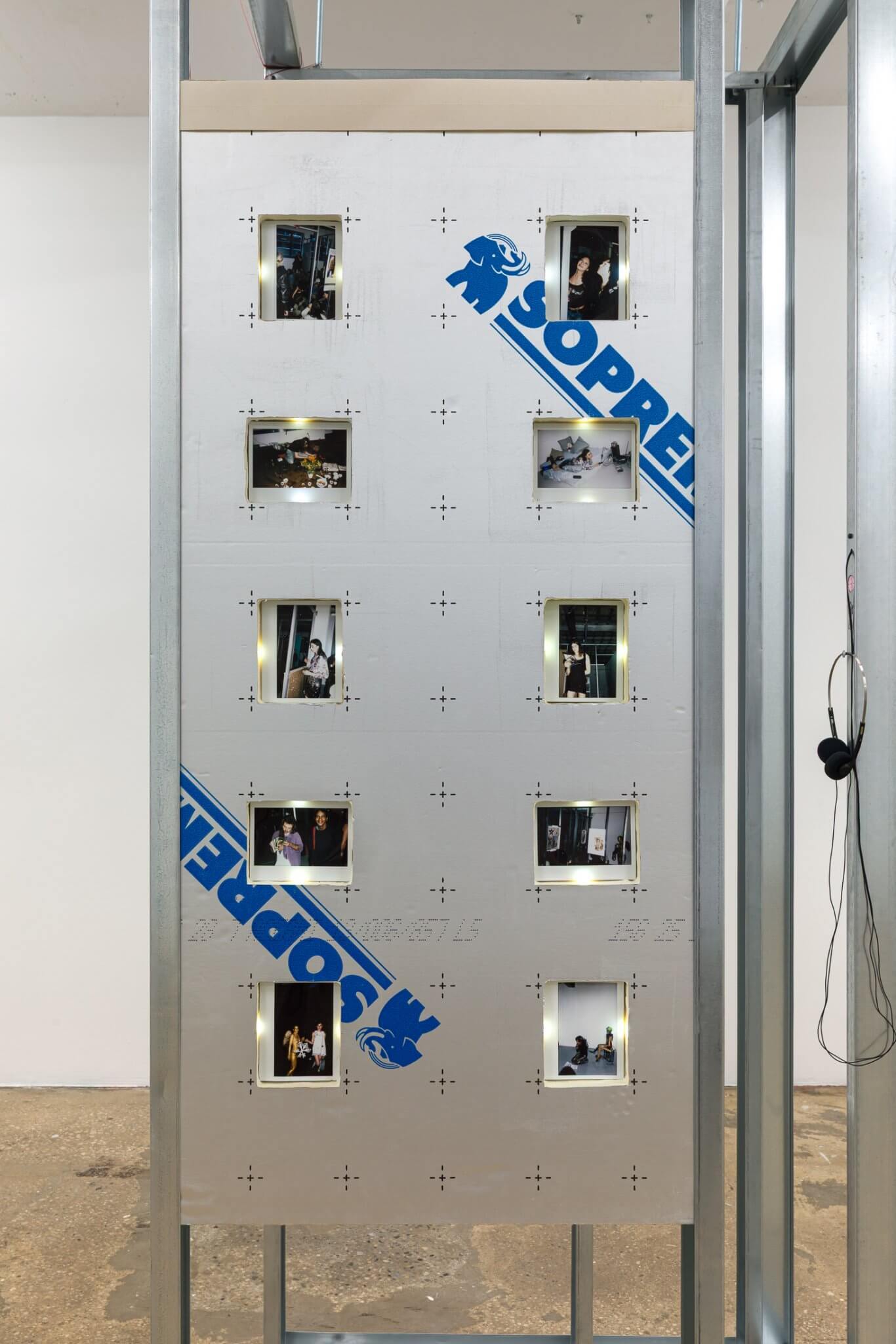Mona Filleul, R2T5, 2025 (detail). Insulation panel, Polaroids, LED lights.
