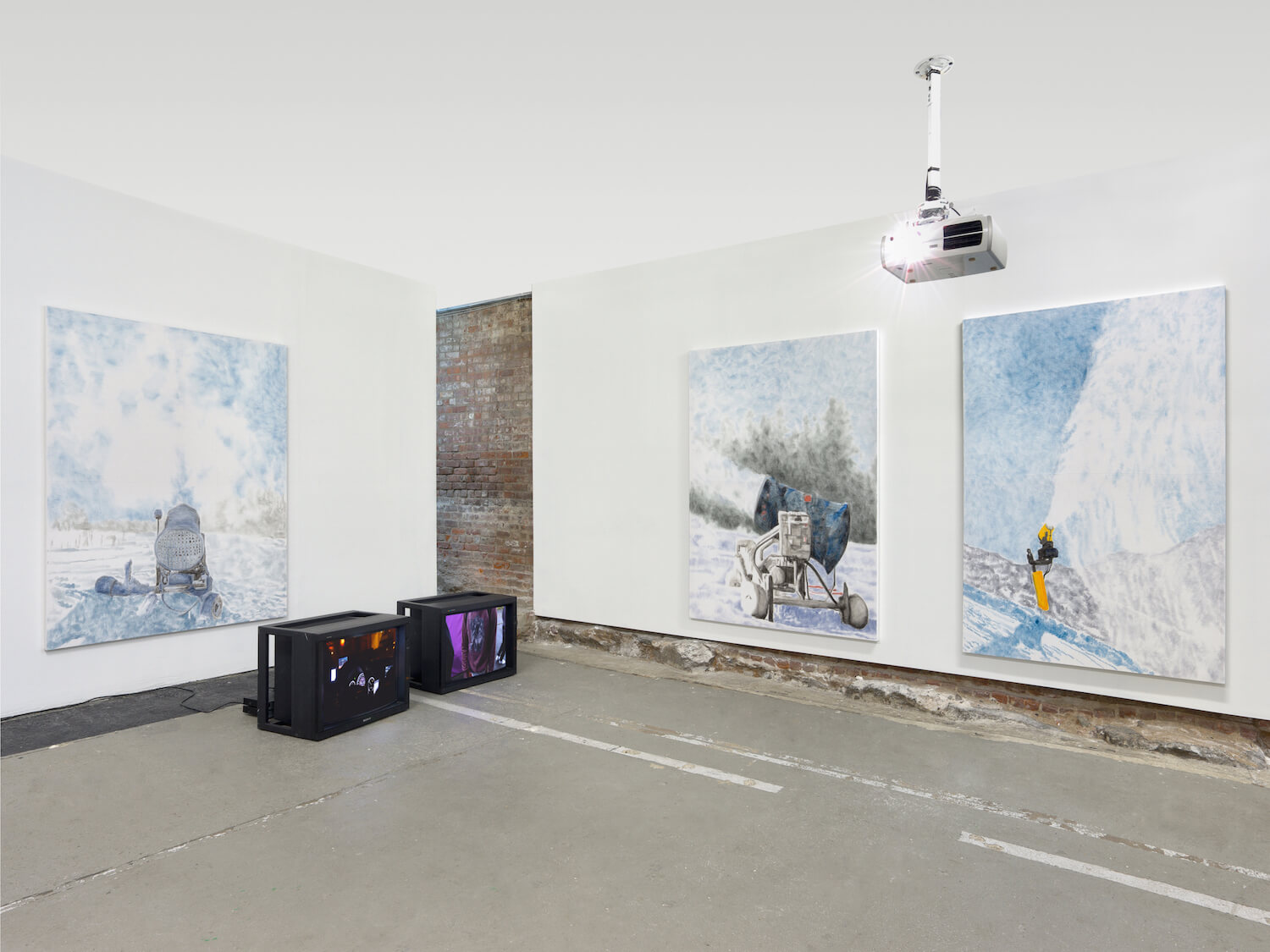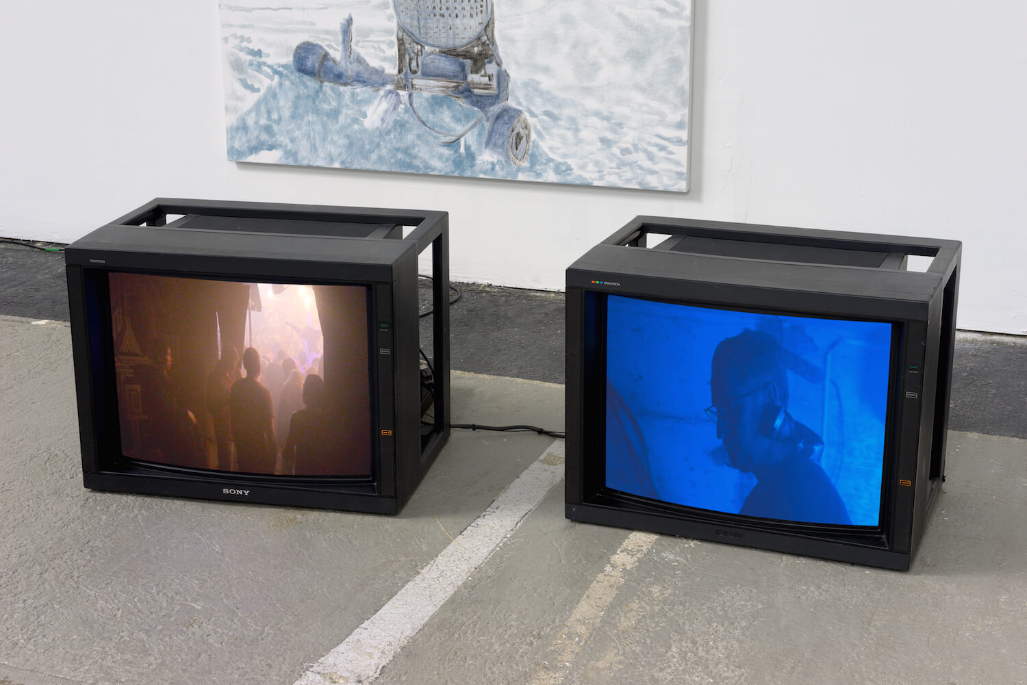 Swiss Institute is thrilled to present Tourist Information (Polyrhythm Technoir), the first institutional solo exhibition in the United States of Cologne-based artists Henning Fehr and Philipp Rühr. The three-part Polyrhythm Technoir series is shown along with five new Soundeaters, which are china ink paintings on molten fabric, intended to acoustically equalize the space in which they are exhibited. This exhibition marks the first time all three videos will be displayed together.