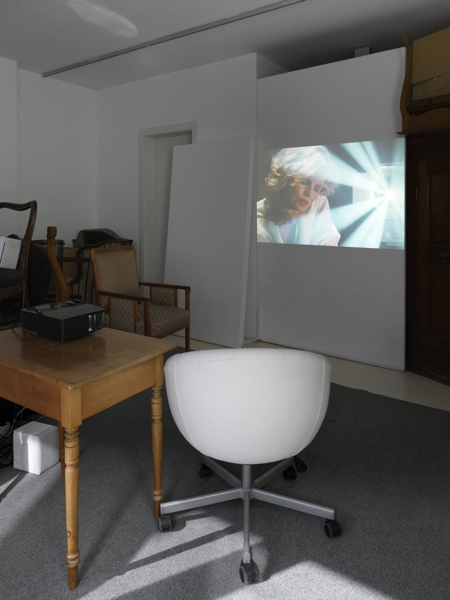 The nature of the exhibition is such that sculptures, paintings, performances and installations transition from prop to image to art object, staging an enquiry into whether these fictional depictions in mass media ultimately have greater influence in defining a collective understanding of art than art itself does. Certain preoccupations with artworks are established early on in cinematic history: the preciousness of art objects anchors their roles as plot drivers, and anxieties intensify regarding the vitality of artworks and their perceived abilities to wield power over viewers or to capture spirits. Across genres, the character of the artist is habitually portrayed as a volatile, mercurial figure with license to subvert societal norms, who is thereby ridiculed, feared and revered. From many such narratives, FADE IN 2 draws out the art objects, granting them the status only previously achieved on-screen, whilst pointing to moments in which one form of media wrangles with the power of another.