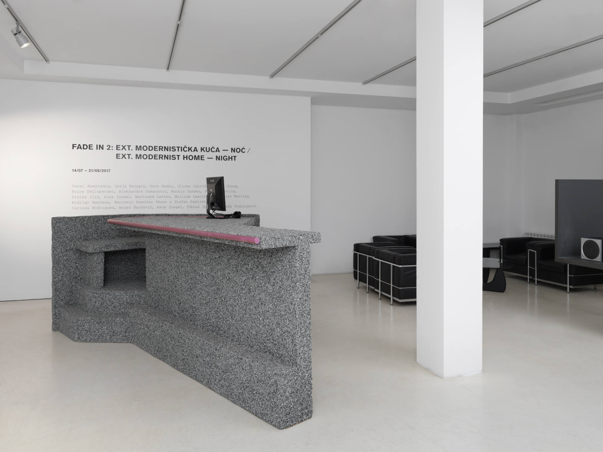 Inhabiting the rooms of the Museum of Contemporary Art - Belgrade’s Milica Zorić and Rodoljub Čolaković Gallery-Legacy, FADE IN 2: EXT. MODERNIST HOME – NIGHT investigates the role that art plays in narrative film and television. The exhibition acts as a sequel to FADE IN: INT. ART GALLERY – DAY, which was on view at Swiss Institute in March 2016. This new iteration allows participating artists to further reclaim the manner in which art is represented on screen, whether as props, set dressings, plot devices, or character cues.