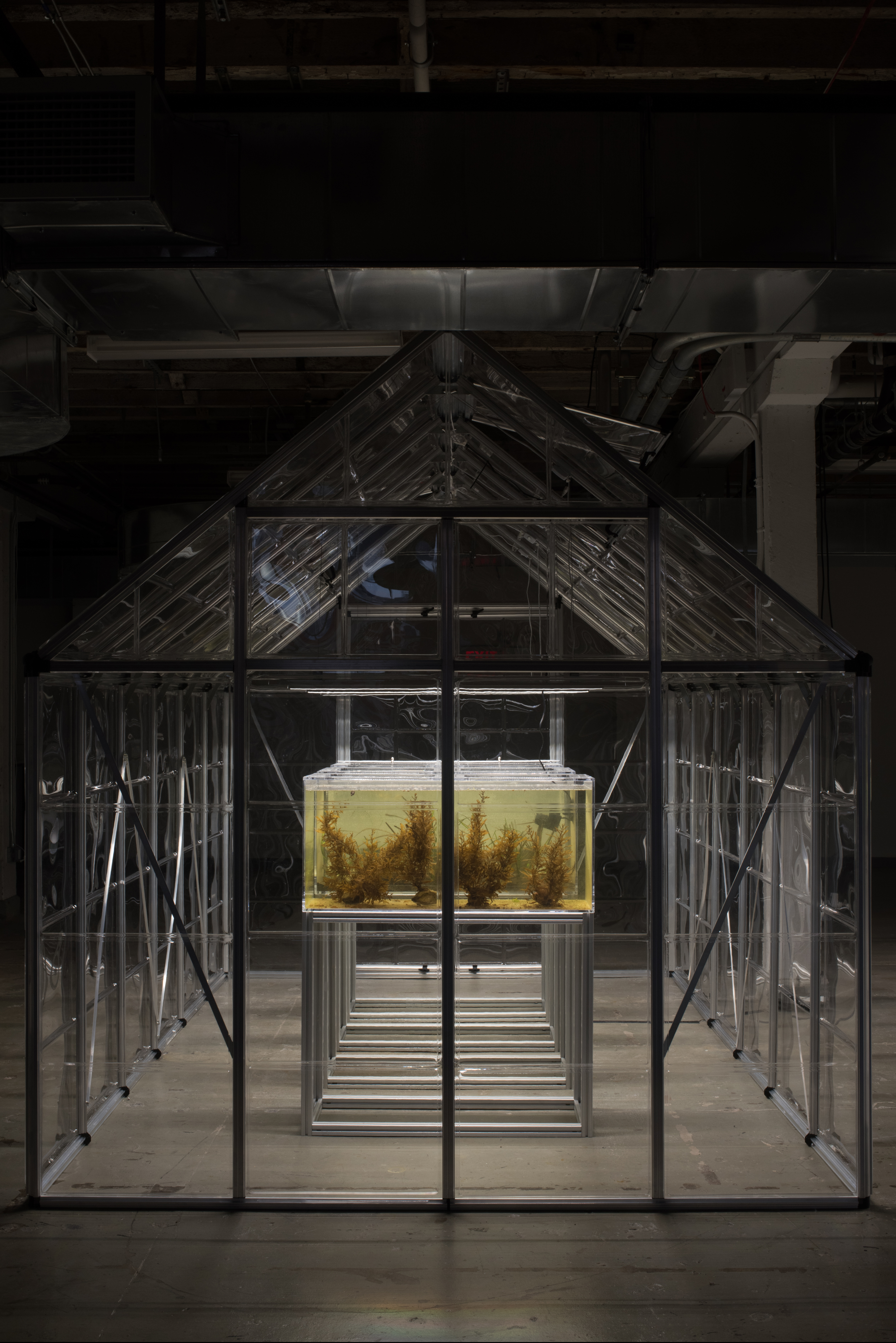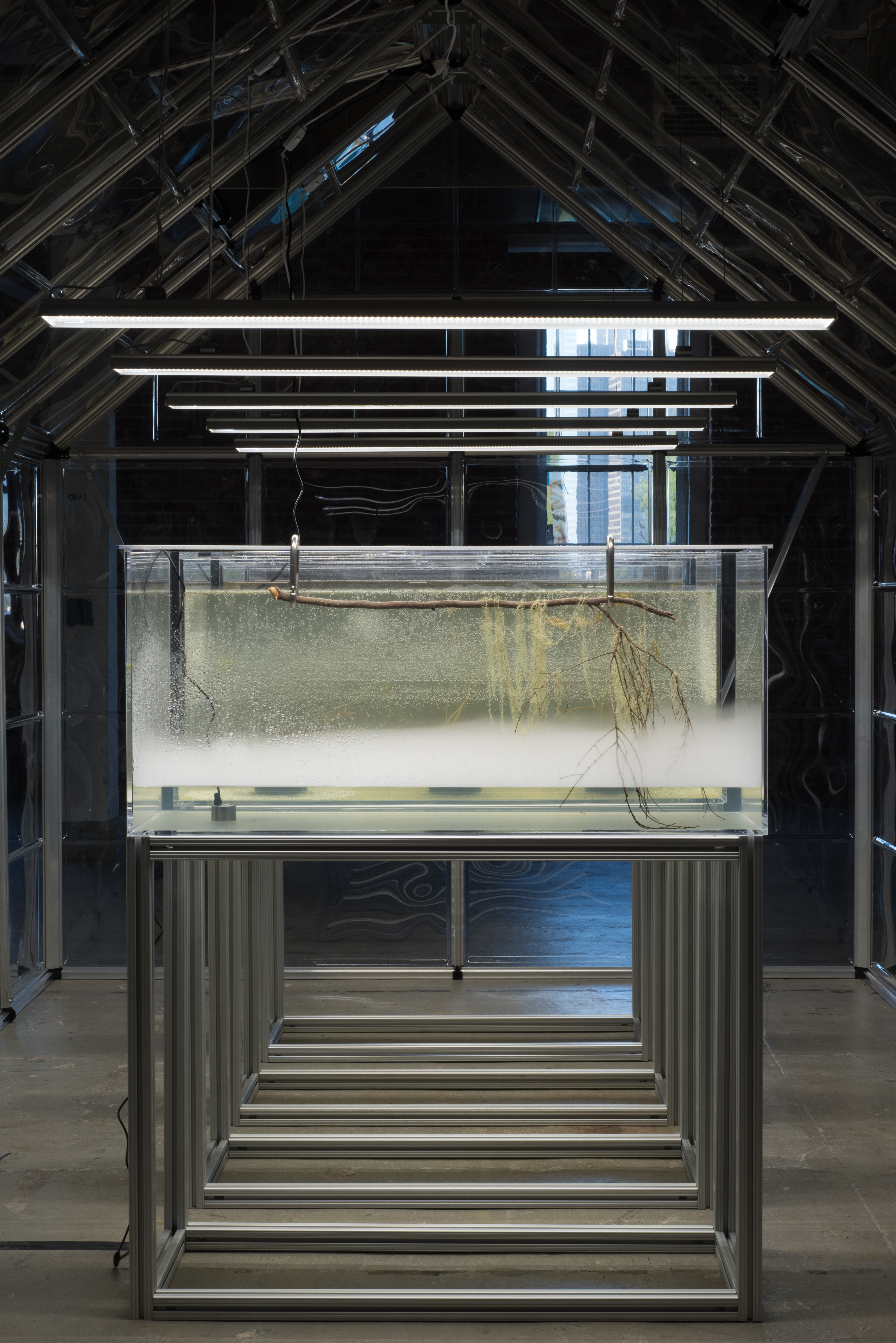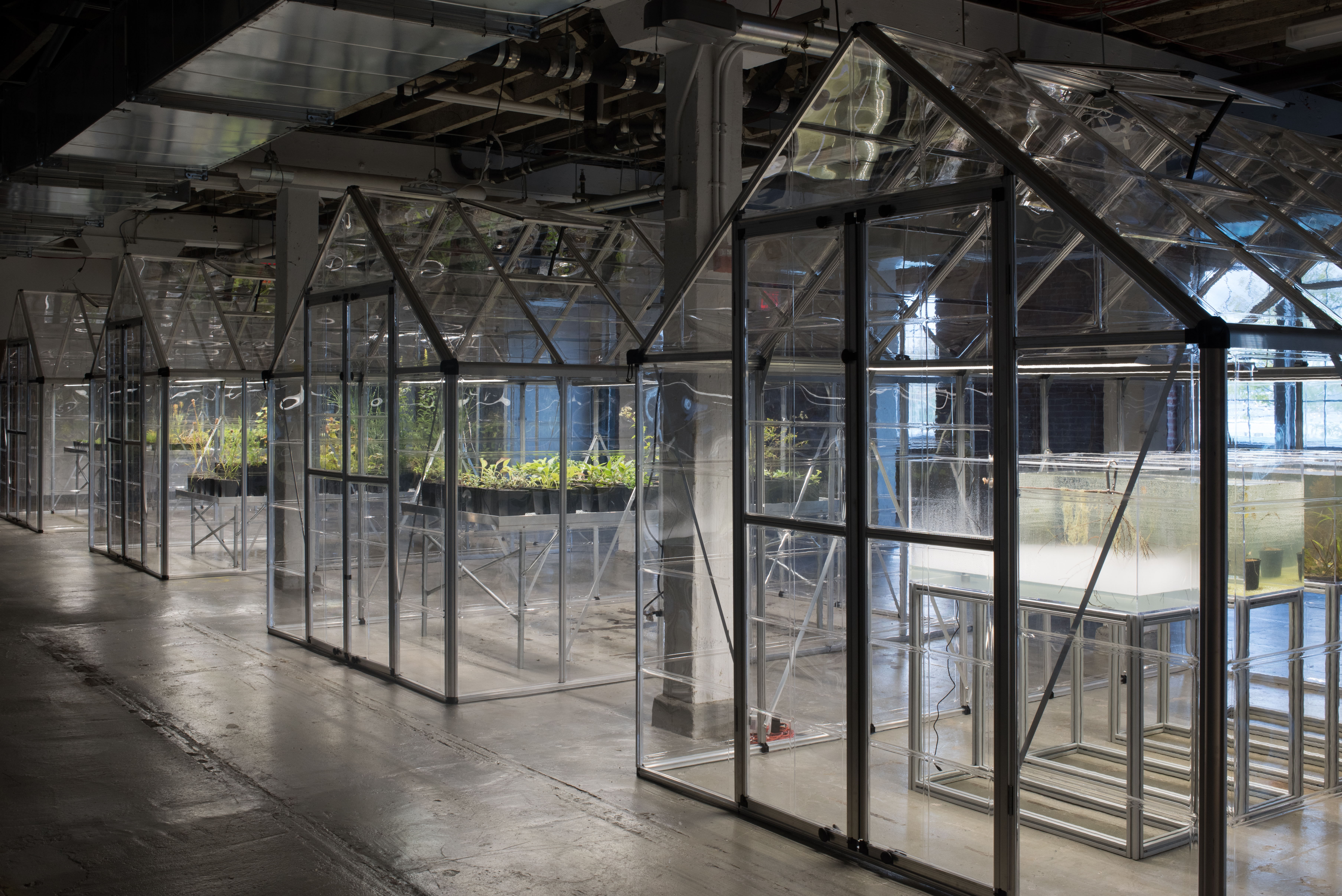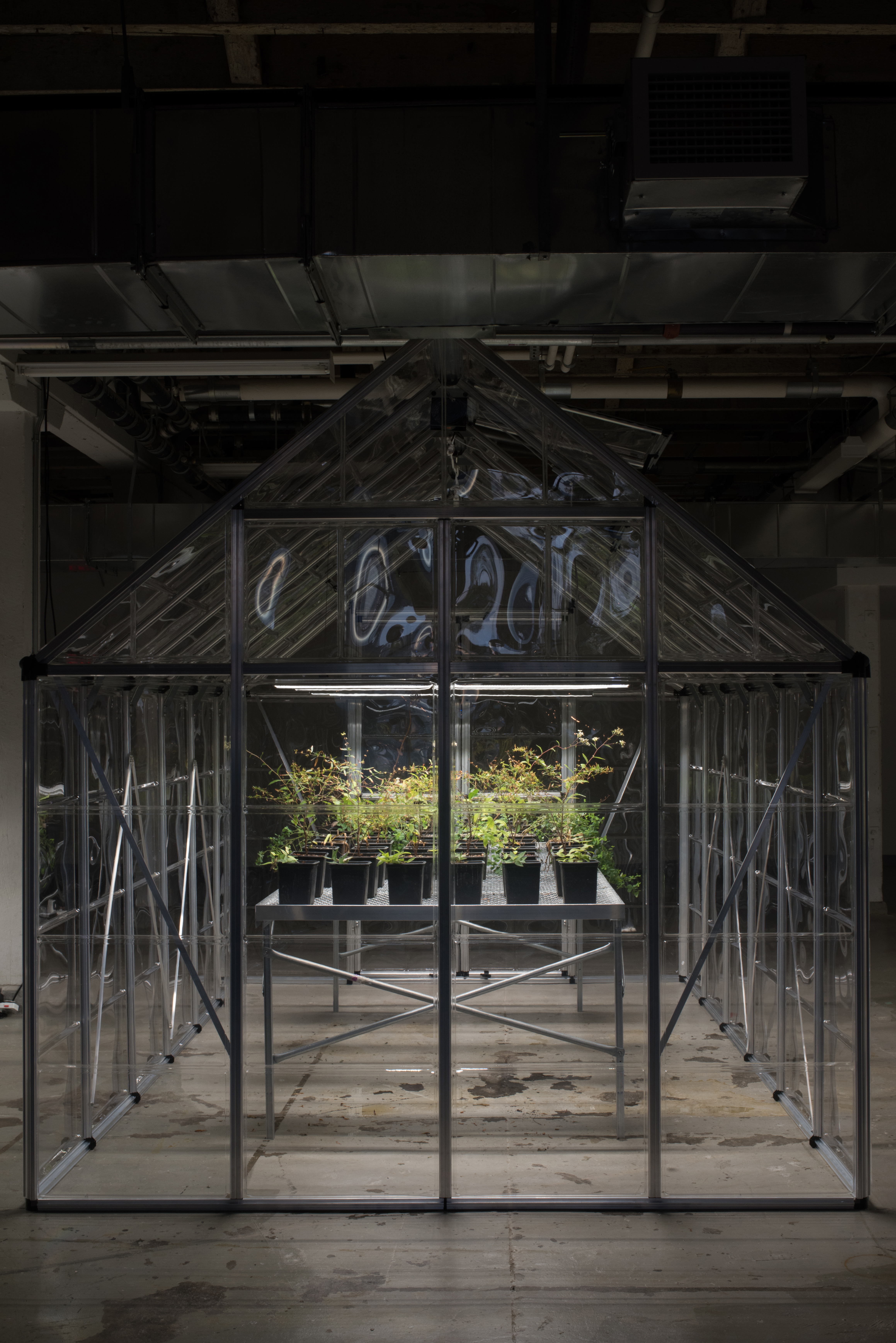 In the gallery at LMCC's Arts Center on Governors Island, four greenhouses contain a selection of plant, lichen and algae species historically documented in the natural environments of New York City, but which no longer grow wild in any of the city's five boroughs. In the months leading up to the exhibition, Wang researched, sourced, planted and tended to seeds and seedlings of these former New York City natives in his garden and studio in Upper Grandview, New York. Throughout the duration of the exhibition, these organisms are sustained within a laboratory-like installation under the care of a team of Arts Center staff, local students and volunteers. The artist intends for the plants to remain in the city after the close of the exhibition, in the managed spaces of urban gardens – re-introduced to the lands where they once grew wild, but persisting now only under human care.