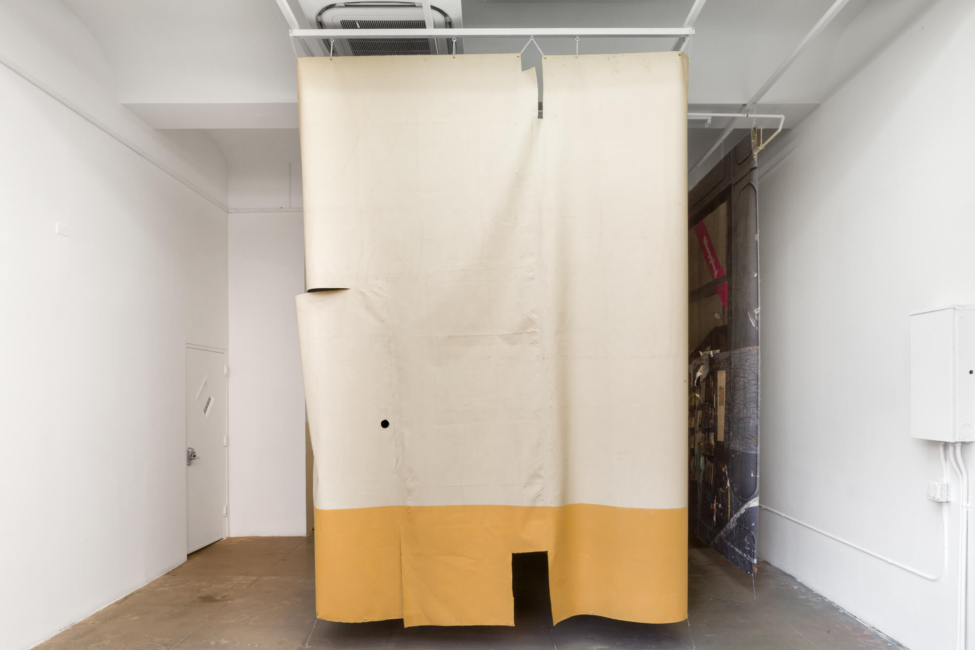 Swiss Institute is delighted to present Curriculum, the first institutional exhibition of Swiss artist Timothée Calame. Calame’s recent work concentrates on how space is designed and partitioned, using sculptural curtains, platforms, barriers and screens, which are often placed in dialogue with spectral paintings and small sculptures. At Swiss Institute, a newly commissioned body of work explores the effects of failed real estate speculation on public space.