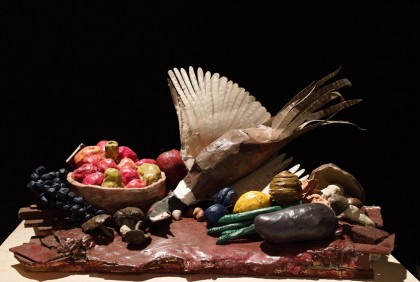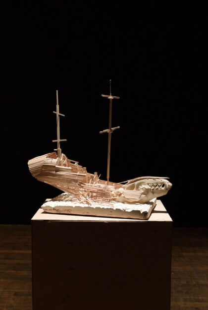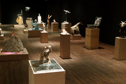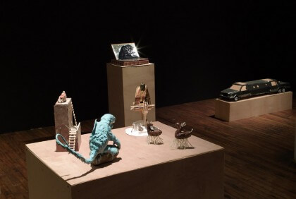 Two years after their successful show at P.S.1, Swiss artists Taiyo Onorato and Nico Krebs return to New York for a solo presentation of their latest work. Instead of traveling the American West to produce photographs on the road (as they did for Twilight Switch in 2006), the two artists deliberately escaped the buzz of the city for upstate New York. In the seclusion of a country house, they dreamed up a refreshing vision of a sculpture garden that riffs off academic tradition with ironic assemblages. In The Whole Shebang, seriousness is coruscated by whimsical humor.
