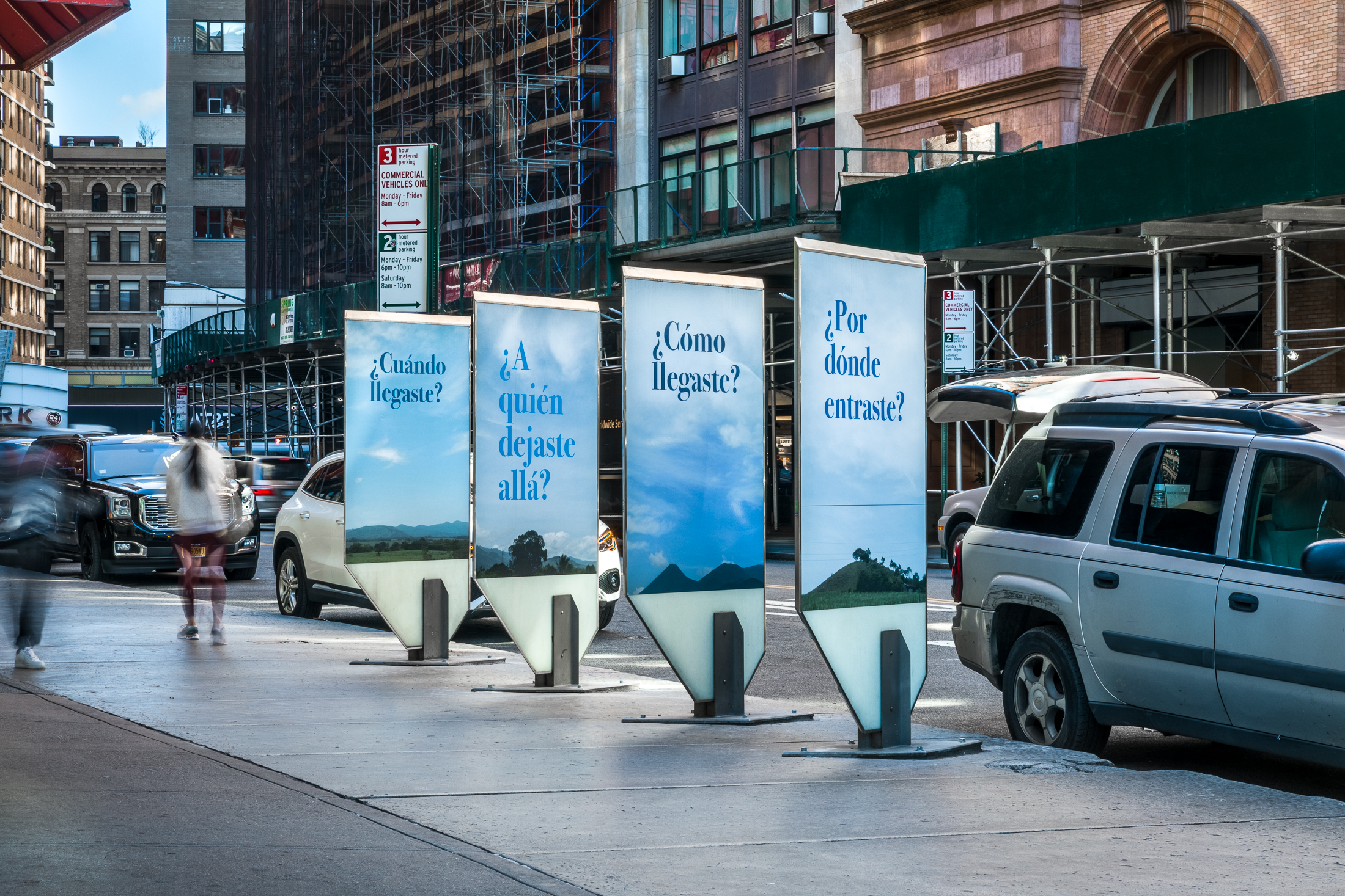 Installation view of Questions, 2021. Installed in Astor Place, New York.